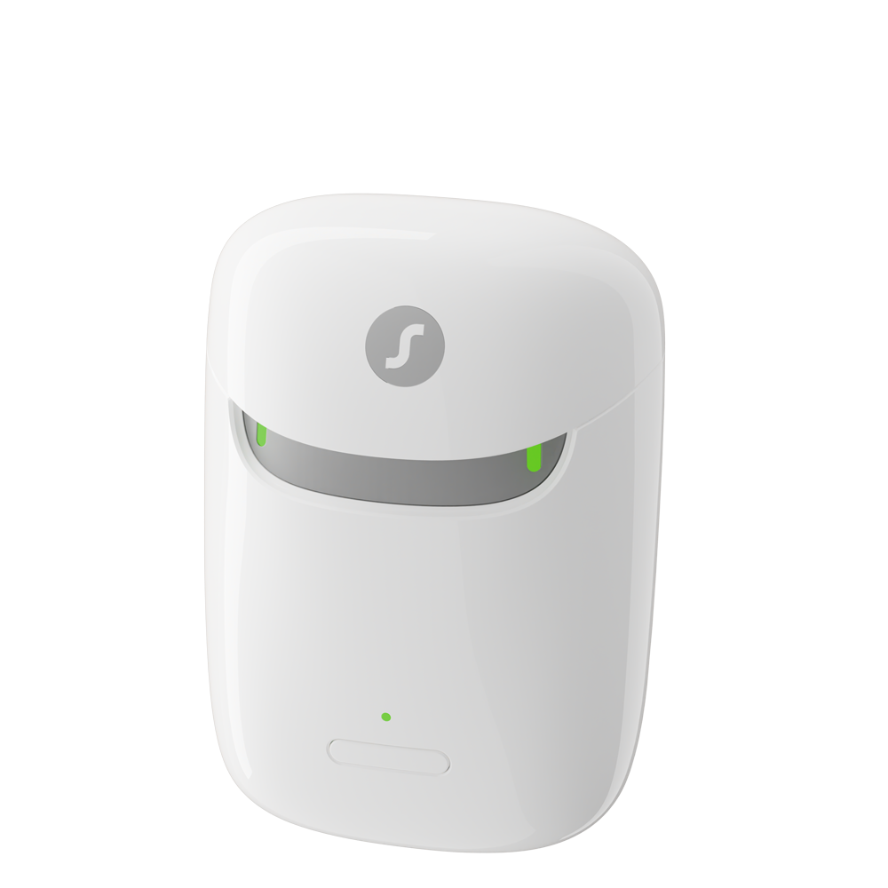 스타일레토 X 충전기는 무선 충전 패드 위에 올려놓으면 자동으로 충전됩니다. 보청기 및 충전기의 충전 상태는 충전기에 있는 LED 상태 표시등으로 실시간 확인이 가능하며, Qi 인증을 받은 모든 충전 패드와 호환 가능합니다.
