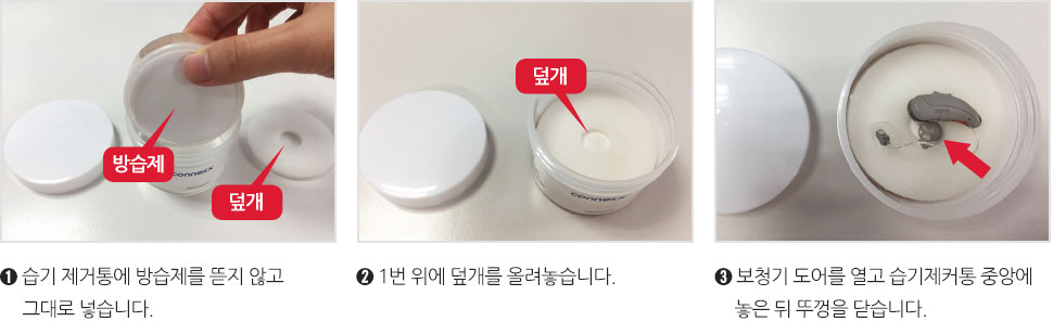 주무실 때에는 반드시 보청기를 습기제거기에 넣어 습기를 제거하시기 바랍니다.